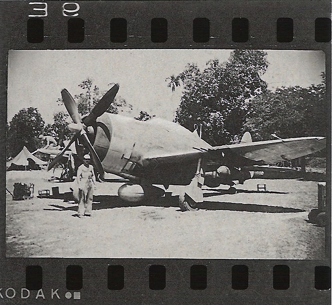 (LEFT) Norman Goldsher with “Bar-Fly,” simmering in the heat. (RIGHT) A P-47 undergoes routine maintenance, either at at Asansol Airfield or at Cox’s Bazar, India.