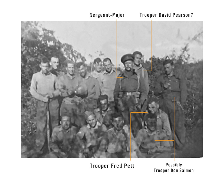 Members of 7th Troop, ‘A’ Squadron, 45th Recce Regiment. Trooper Fred S. Pett is the second man from the right, kneeling. Trooper Prett sadly perished at the tender age of 23 under known circumstances. (Photo courtesy of Pett’s daughter, Jane Barlow)