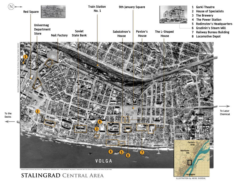 I did some quick checking and you are absolutely right. The 34th Division was never at Stalingrad, and its appearance in the panoramic map is obviously a mistake. In fact, the ‘I’ marker should read 29th Mot. Division, and the “H’ tag should instead read 14th Pz Division. Damned silly blunder on my part.