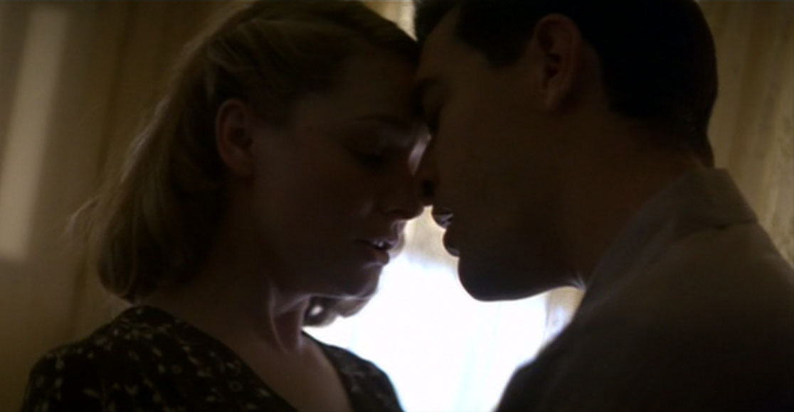 Train speaks as if in a private whisper to the audience, speculating, meditating on the heart of man, the soul of humankind and the force of nature and evil. The narrative of The Thin Red Line is focused most cogently around three conflicted relationships: Between an aging regimental Pvt. Bell and Marty before the war.commander eager for a last chance at glory, Colonel Tall (Nick Nolte) and a humane company leader, Captain Staros (Elias Koteas) who fears for the lives of his men. An act of love between the honorable, homesick Private Bell (Ben Chaplin), and his wife, Marty (Miranda Otto) who later leaves him for an Air Force Captain, and the last, perhaps the most critical of all because of its examination of truth and courage, life and death – the conflict between Private Witt and the hard-bitten Company First Sergeant, Welsh (Sean Penn).