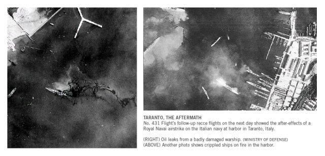 Two dozen Fairy Swordfish biplane torpedo-bombers launched from Illustrious after nightfall on November 12. Despite the fragile nature of the antiquated Swordfish, the raid was a spectacular success.