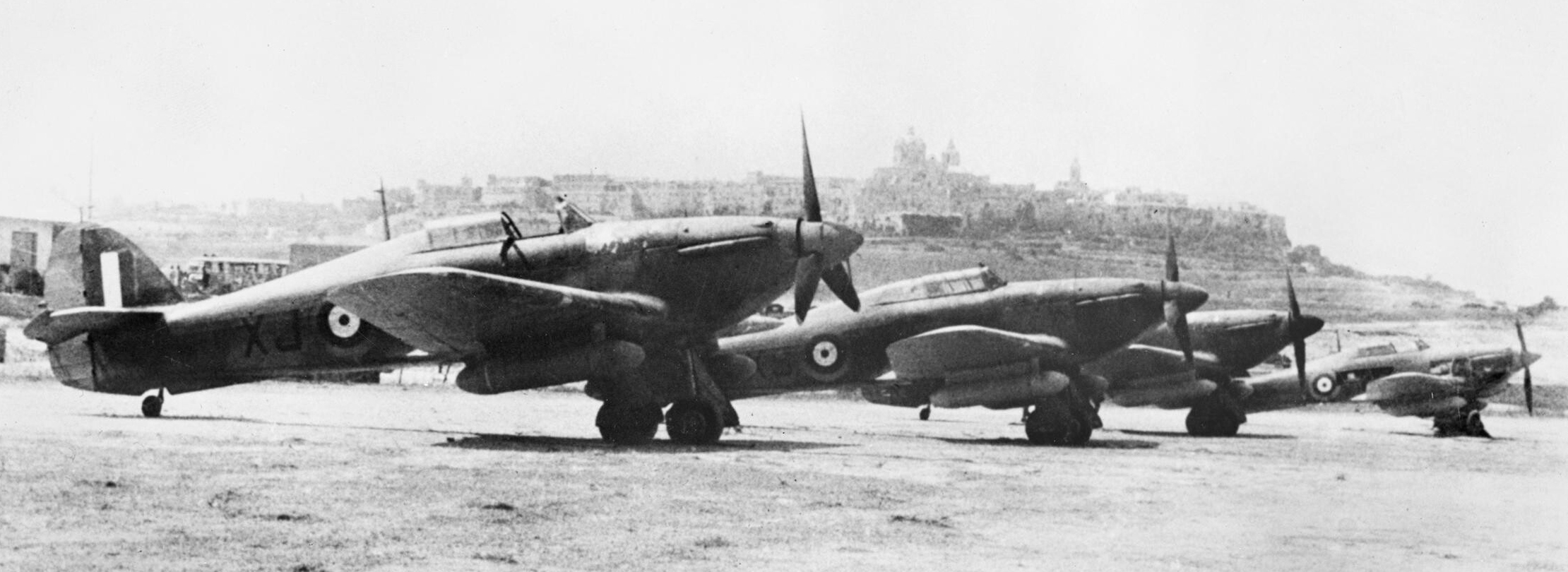 Hawker Hurricanes of 261 Squadron at Luqa air base, at the heart of the island. (IWM CM 2270)