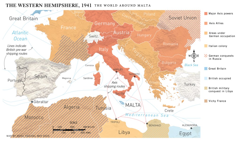Malta’s position in the narrows of the Mediterranean made it vitally important – a fact that the Italians and the Germans were quick to recognize. (Akhil Kadidal)