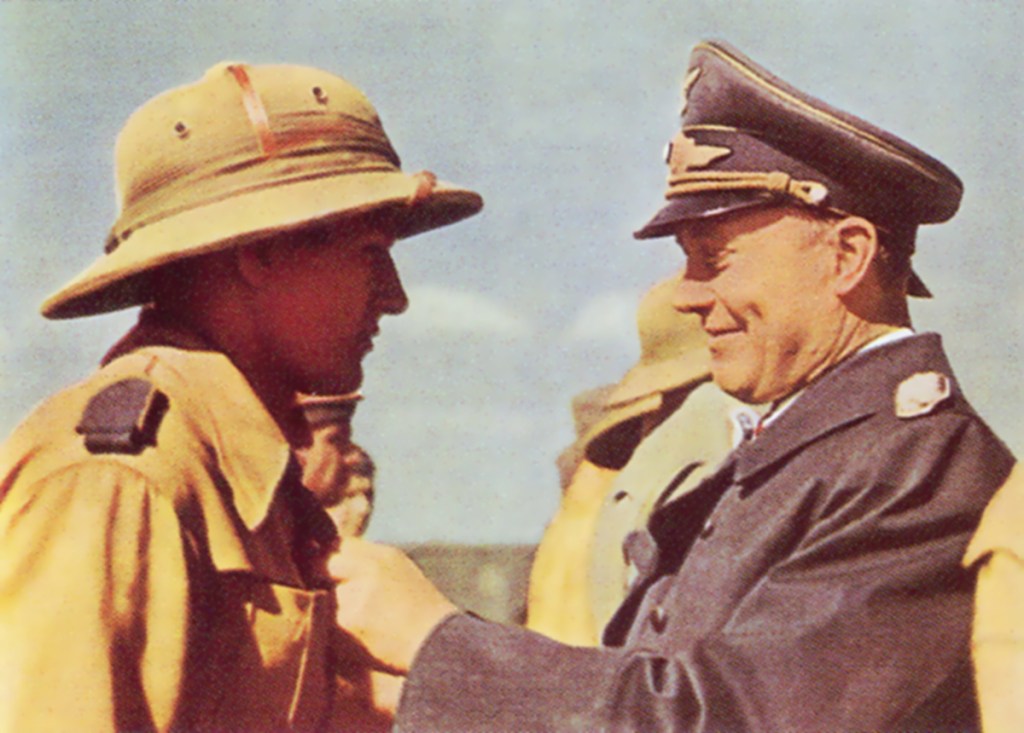 General Hans Geisler of Fliegerkorps X decorates one of his men in the Mediterranean. (Signal magazine)