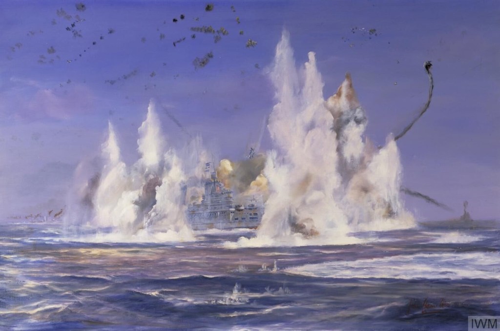 Trouble hit Illustrious on 10 January 1941. A mass of German bombers punched through her fighter screen to land six 1,100-lb bombs. Within the space of an hour, Illustrious was on fire and in danger of sinking. Undaunted, her crew affected emergency repairs, allowing her to enter the dangerous Sicilian straits on a straight course towards Malta’s Grand Harbor. More air attacks followed. By when she arrived at Grand Harbor that night, Illustrious was more charred steel and mangled men than a fearsome weapon of war.