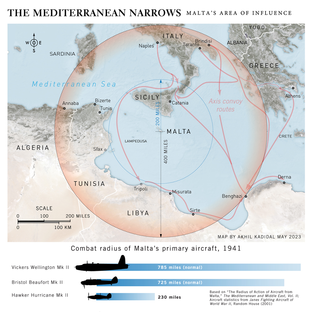 “Without Malta, the Axis will lose control of North Africa,” he said and cited the loss of thousands of tons of cargo since the start of the year to British submarines operating out of Malta and Alexandria as evidence.