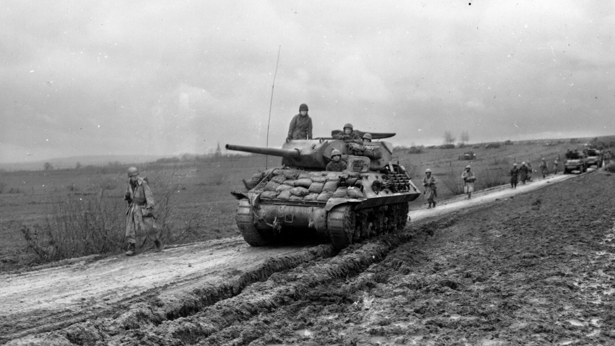 At the heart of the division’s strength were some 228 M4A2 and M4A3 Sherman tanks, 76 M3A3 and M5 Stuart light tanks, 45 M10 Wolverine tank-destroyers, over 250 M3 halftracks of various types, 126 artillery and anti-tank guns (including 81 Priest self-propelled artillery guns), over 2,000 trucks and nearly 400 jeeps or light cars.