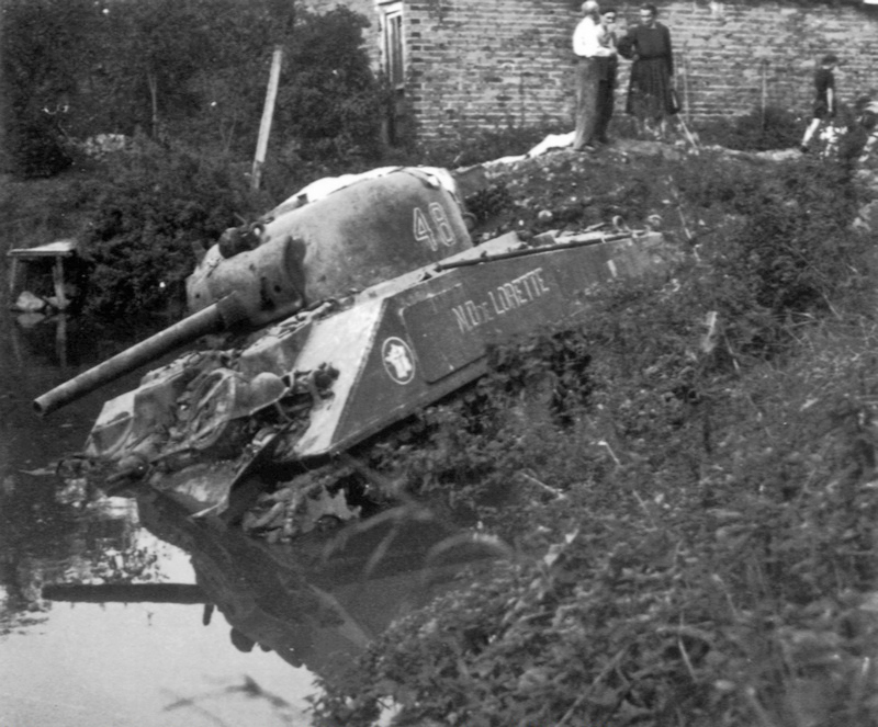 The 88mm gun began firing at another Sherman, the Notre Dame de Lorette. “The first shell cut a tree that fell close to the tank; a second cut the tank’s antenna as it went over a bump,” recalled the tank commander, Sgt. Freudiger.