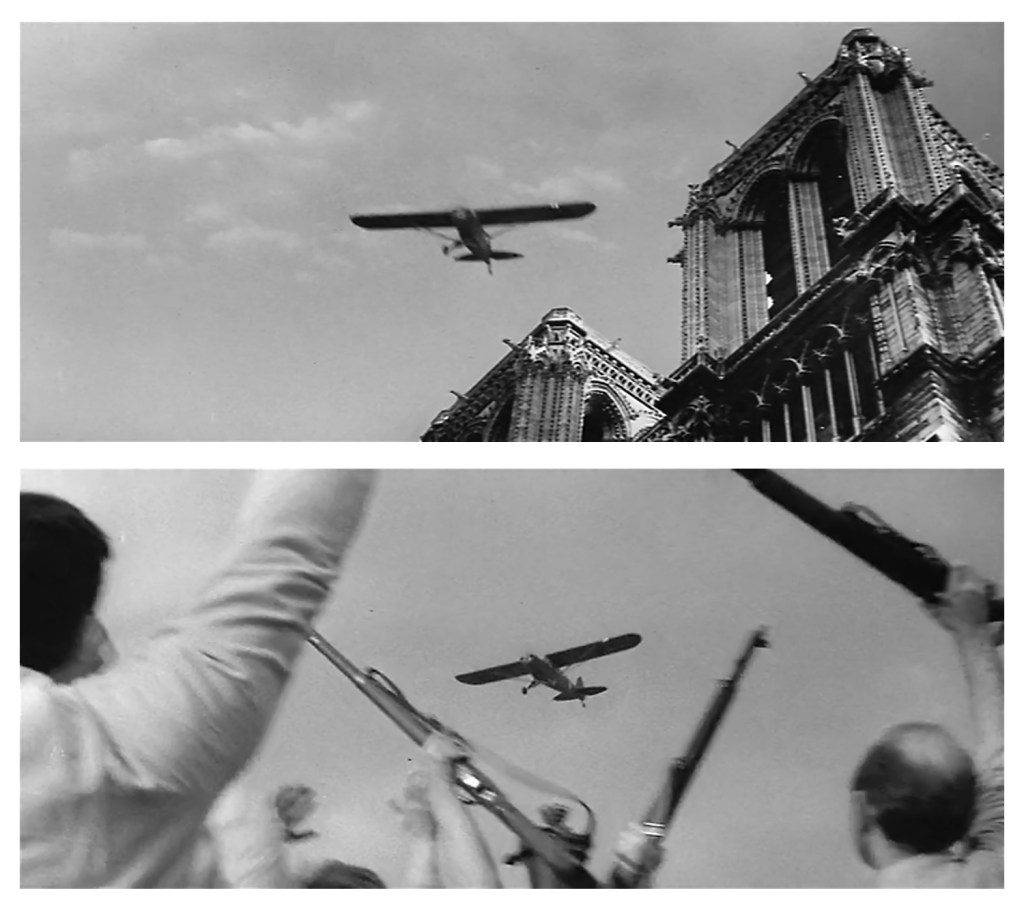 Callet flew the Cub low over the city, crossing over Hôtel de Invalides. As he approached Notre-Dame, he saw three German tanks on the square in front of the church. The tank turrets blinked repeatedly – machine gun fire. All at once, Callet could see German troops running. Then, time appeared to slow, he saw a couple embracing each other along the Seine. German gunfire flashed past his aircraft. On rooftops, Frenchmen and women waved handkerchiefs at them.