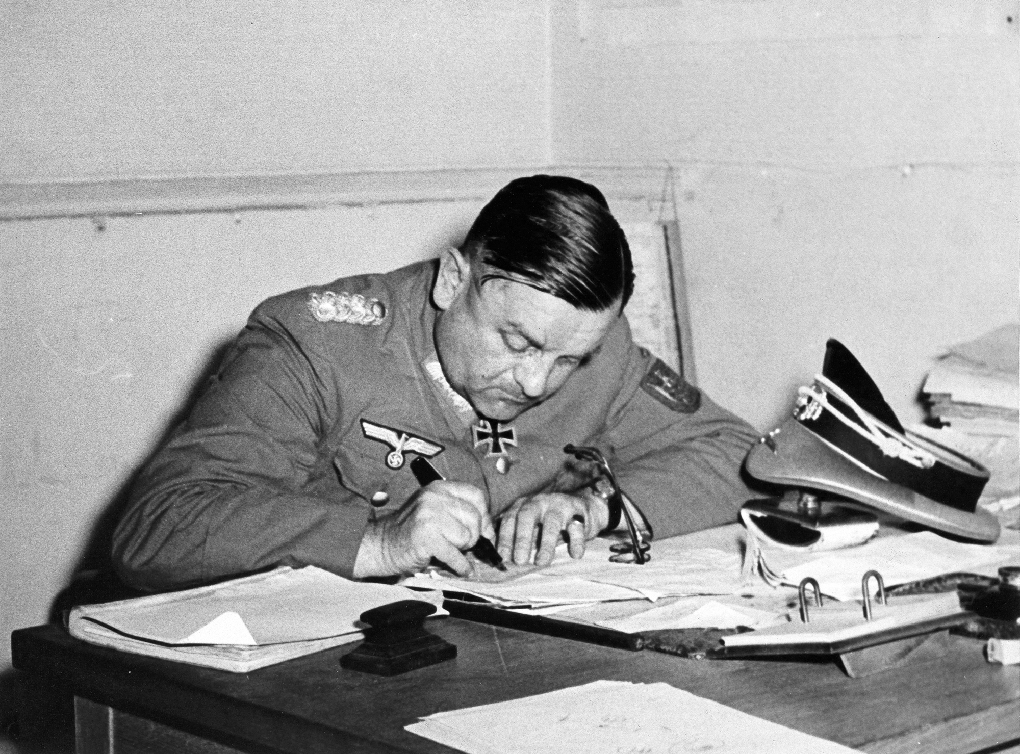Von Choltitz, a little pale, sat upright at his desk, his arms crossed. “I wish that we are treated like soldiers,” he said stiffly. (The Musee de la Resistance)