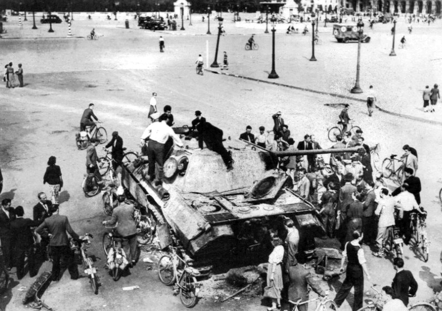 Massu and his men scrambled to see where the shooting was coming from. Then they saw it: a single Panther tank rumbling out of the front of the distant Jardin de Tuillers, 2,000 meters away. The Panther took up station on the Place de la Concorde. Massu ran for his field telephone to summon M10 Wolverine tank destroyers.