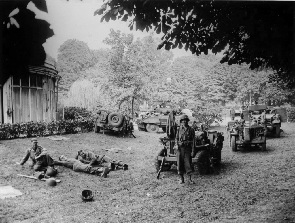 It is unsure if Beach and her neighbors had heard the terrific din of battle raging at the Jardin. But that evening, she did hear neighbors shouting that a column of Jeeps were coming down the street.