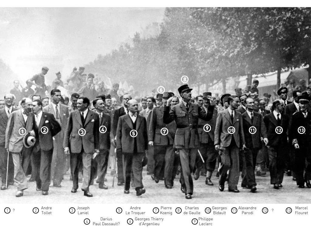 To the general Parisian crowd, most of the top brass of the resistance were strangers. As the historian Mathew Cobb wrote, “Most of these names and faces are now forgotten, and even at the time, few of them were known to the public”. (Cobb, ibid) When the crowd cheered, it was for the Free French forces and the man who wielded them – de Gaulle.
