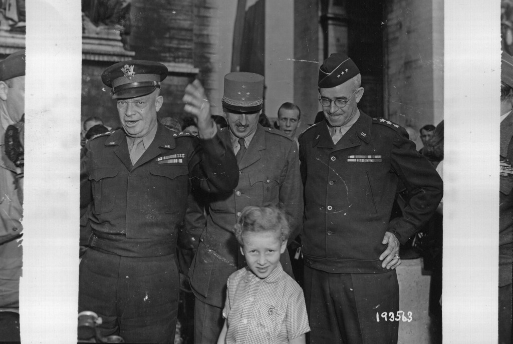 “I understood [de Gaulle’s] problem,” Eisenhower wrote, “and while I had no spare units to station temporarily in Paris, I did promise him that two of our divisions, marching to the front, would do so through the main avenues of the city. I suggested that while these divisions were passing through Paris they could proceed in ceremonial formation and invited him to review them… I told him that General Bradley would come back to the city and stand with him on the reviewing platform to symbolize Allied unity.” (Eisenhower, 358-359)