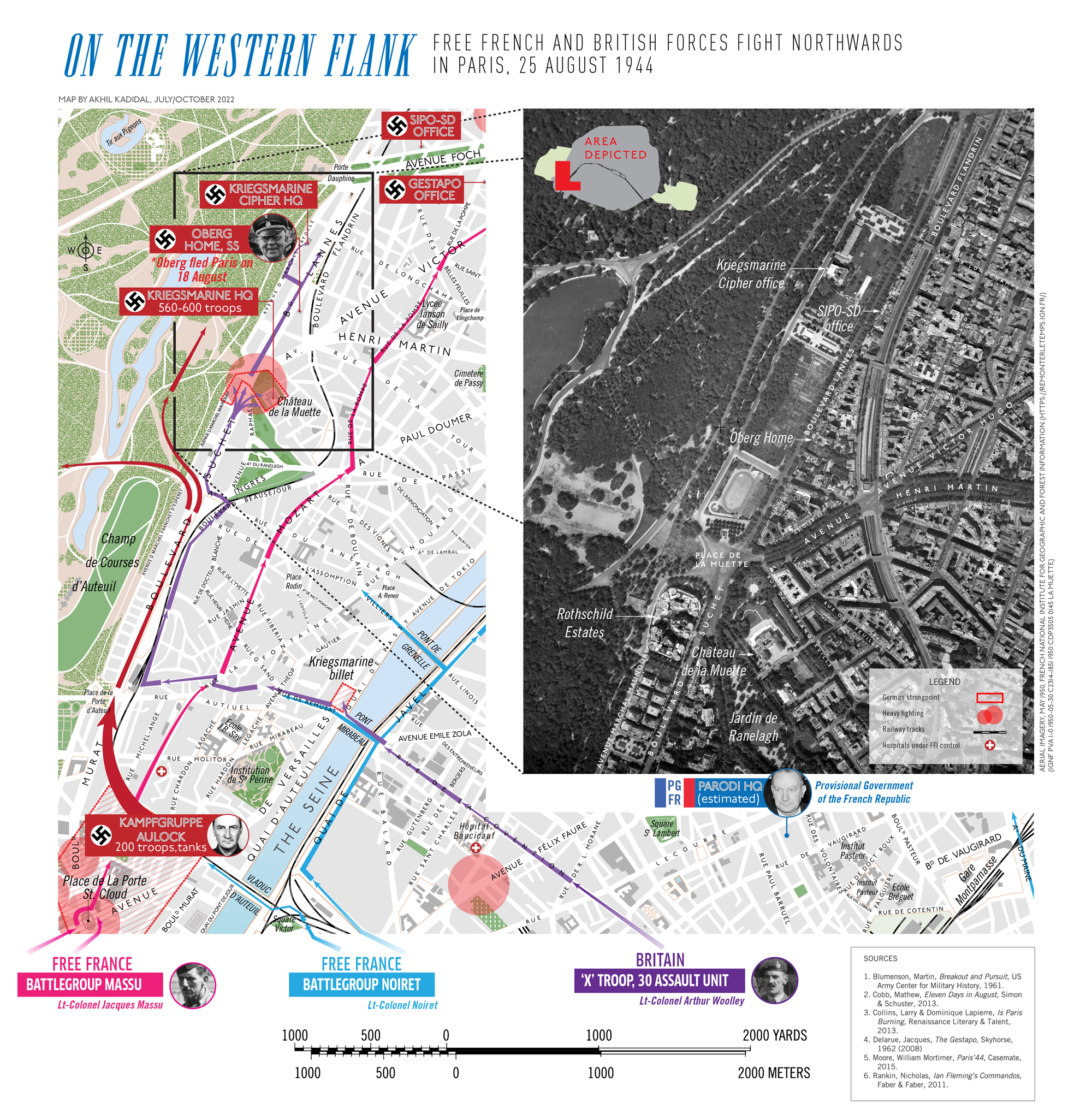 The unit’s secondary objective was to gather intelligence documents on the French political class to determine the extent of collaboration with the Nazis. The unit arrived in the city at around 10 pm with the objective of securing 514 “personality targets”. Elements of 30AU also shared this mission.