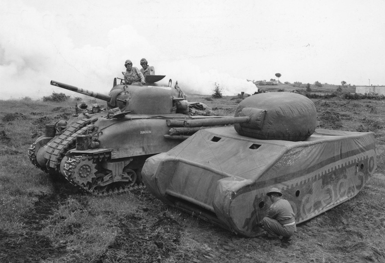Equipped with a massive array of dummy landing craft, vehicles, camps, tank-shaped balloons, even cardboard airplanes, the group was aided by the American 303rd Signals Battalion, whose wireless traffic gave the Germans an invaluable stream of false information.