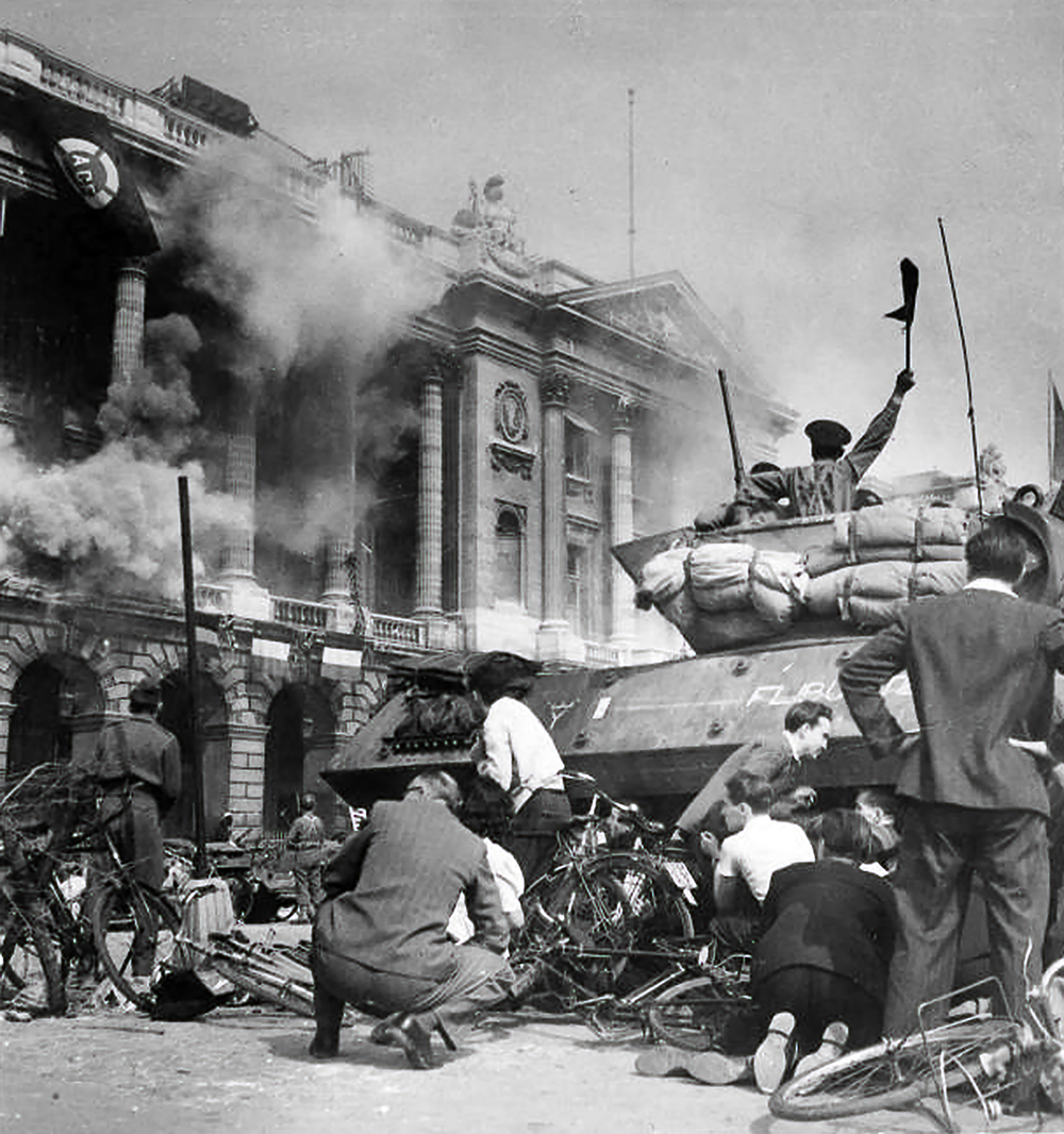 A fierce battle erupts in the city as the 2nd Free French and the US 4th Infantry Divisions move to secure key areas. Among the allied forces are the writers, Ernest Hemingway and J D Salinger. Even the heat of combat cannot sway exultant mobs from embracing Allied troops as only a once-subjugated population can.
